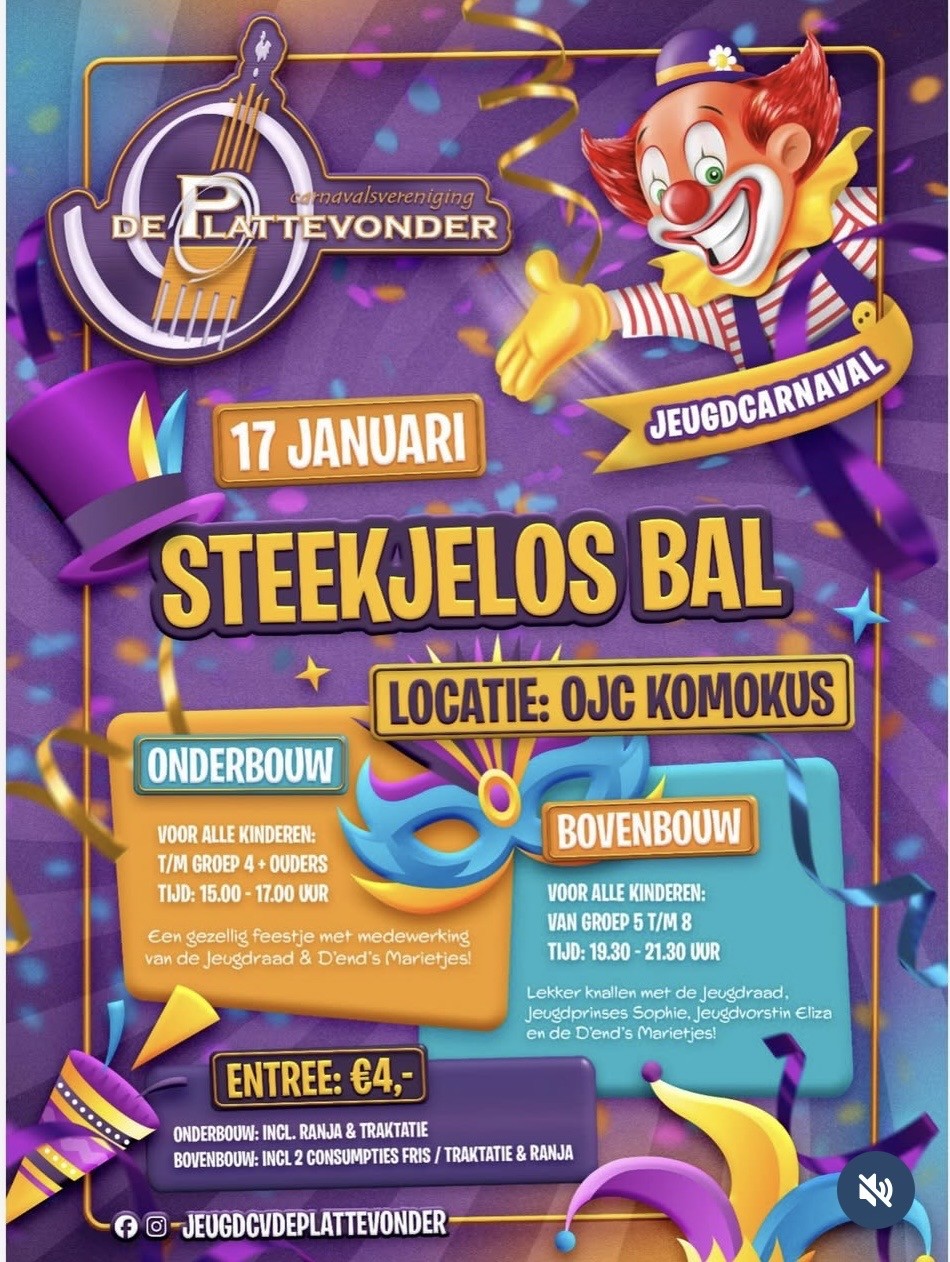 Kom gezellig mee carnaval vieren met onze Jeugdhoogheden en onze Jeugdraad van CV De Plattevonder!