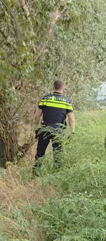 Ongeveer anderhalf uur later besloten we weer terug te gaan naar dezelfde locatie. Dit in de overtuiging dat de persoon waarschijnlijk nog steeds in deze omgeving zou moeten zijn. Bij aankomst zagen we dat er op de locatie bij een schuur, waar we de man eerder hadden gezien, wat spullen waren verplaatst. Toen wij daarop de schuur binnenvielen, vonden wij daar de betreffende man, die zich daar, na onze eerste zoekactie, verstopt had.