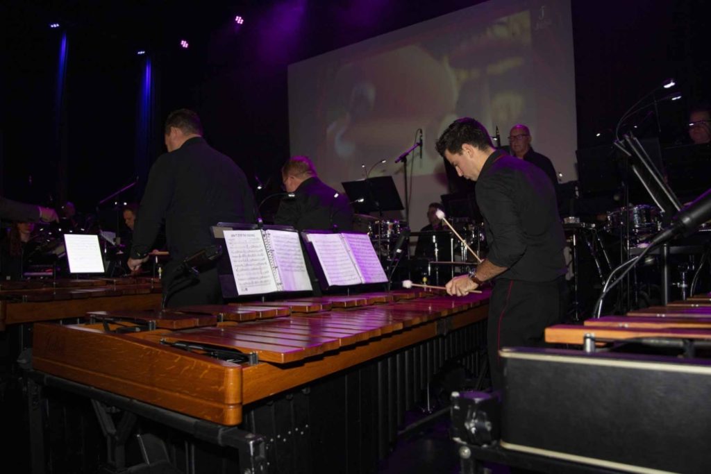 Zo’n twintig films passeerden de revue. Fragmenten hieruit kwamen, vakkundig gemonteerd, op een groot scherm in beeld. Ze liepen synchroon met de slagwerkmuziek, die was aangevuld met blazers en een combo. Bekende melodieën uit Soldaat van Oranje, James Bond en Mission Impossible werden afgewisseld met stukken uit Pirates of the Caribean en Gladiator.