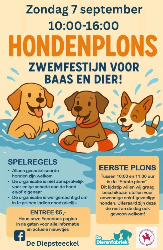 Goed nieuws voor hondenliefhebbers uit Someren: de Hondenplons is terug! Op zondag 7 september duiken honden en baasjes weer samen het water in bij zwembad De Diepsteeckel.