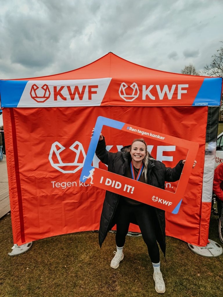 Met haar actie haalde ze maar liefst €1.700 op voor KWF Kankerbestrijding! Ondanks een voorbereiding met ups en downs zette ze door en haalde ze de finish.