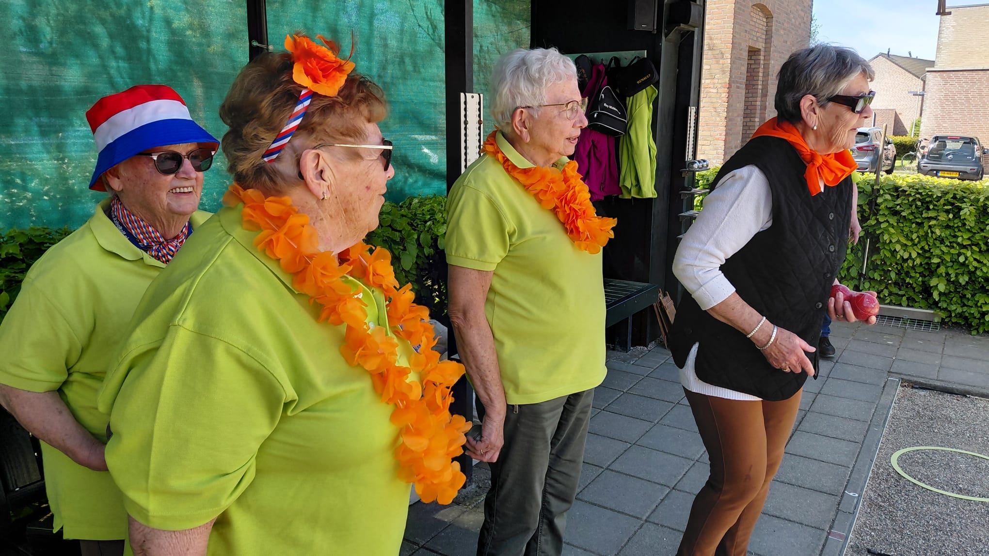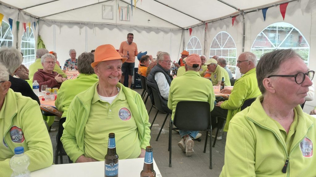Het was weer een prachtige en zonnige dag. ’s Morgens vroeg werd de tent weer geplaatst en werd het speelveld gezellig versierd met oranje vlaggetjes en ballonnen. Om een uur werden alle teams verwacht er hadden zich 22 teams aangemeld voor deze dag. Jammer was dat er een team wegens privé omstandigheden zich had af moeten melden. Na een welkomstwoord van Riny Vossen werden alle teams in de tent uitgenodigd voor een kop koffie of thee met iets lekkers erbij. Op deze middag hadden wij ook weer 2 dames te weten Henny en Toos die voor de drankjes zorgde en dat alles in onze tent netjes was. Ondertussen werden de teams voorgesteld en wie er als eerste moesten gooien.