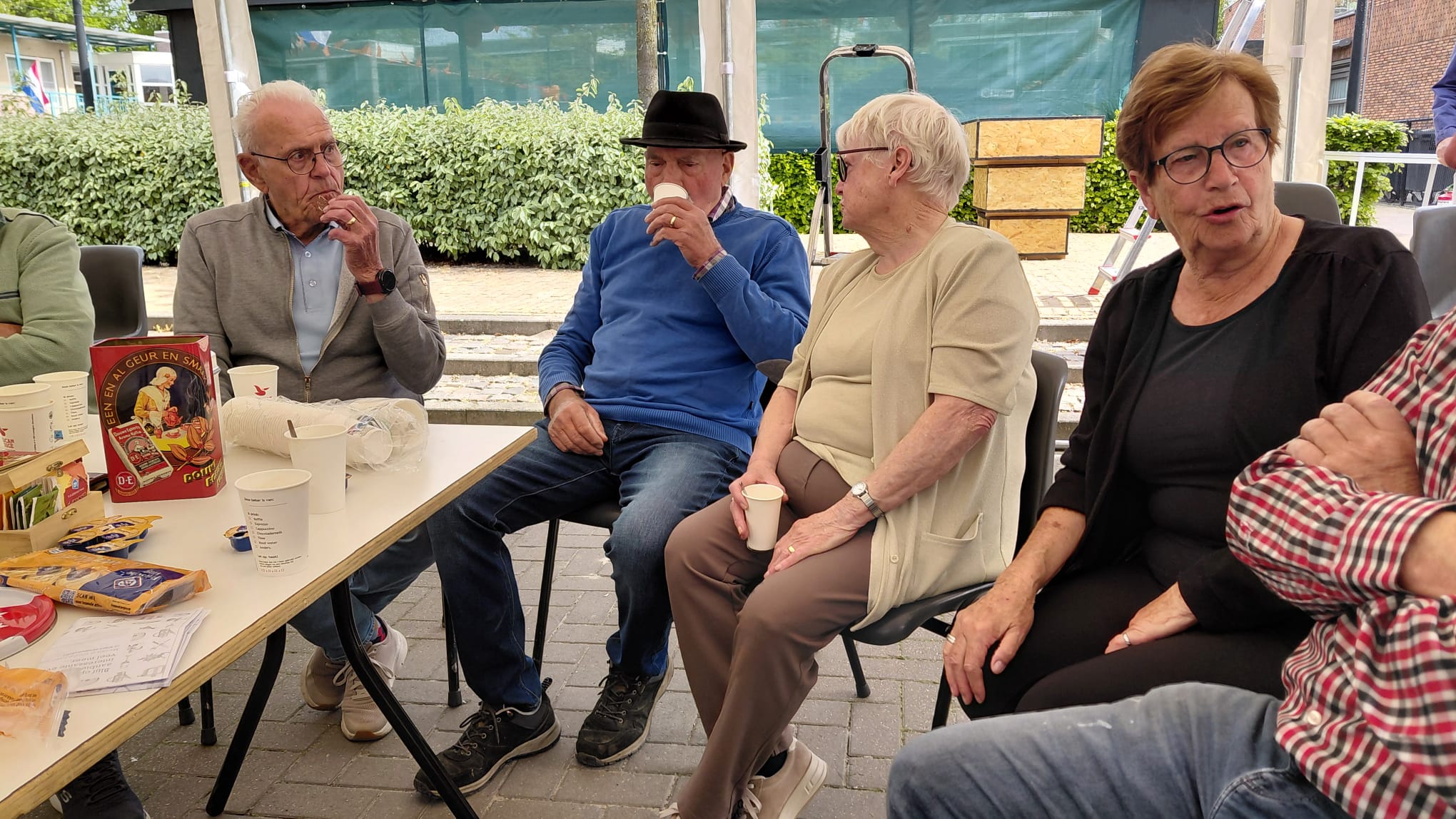 Hierna bleef het nog lekker gezellig met muziek van Rinie Wijnen, nadat iedereen nog wat gedronken had gingen de meeste mensen naar huis. En kon de organisatie alles weer opruimen. Verder willen wij De Einder bedanken voor het beschikbaar stellen van de tafels en stoelen en het gebruik maken van de toiletten. Ook de buurtbewoners willen wij bedanken om het vrijhouden van de parkeerruimte zodat wij onze tent konden plaatsen. En natuurlijk iedereen die op wat voor manier zich deze dag had ingezet.  Zo zie je maar, dat door samenwerking er weer een mooie koningsdag kan worden georganiseerd. Op naar volgend  jaar!