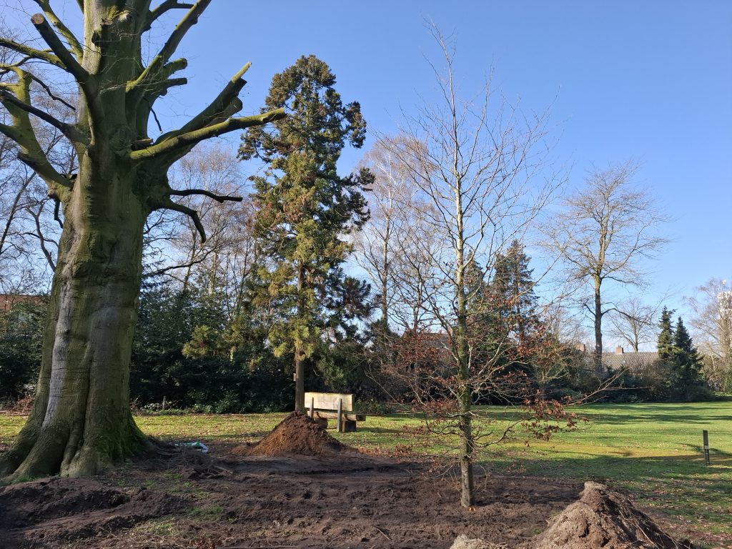 Het duurt nog jaren voordat deze boom net zo groot en indrukwekkend is als de vorige. Toch zijn we blij en dankbaar dat de Pastorietuin weer een prachtige rode beuk heeft om van te genieten.