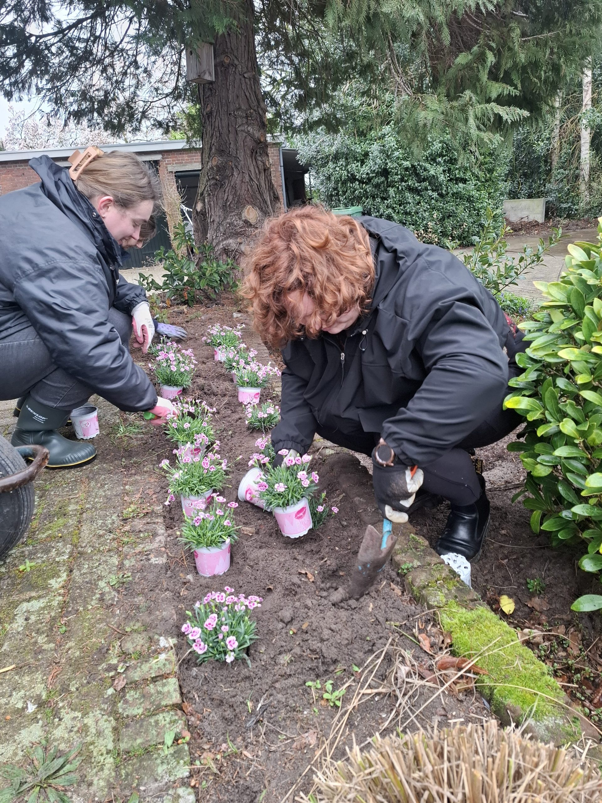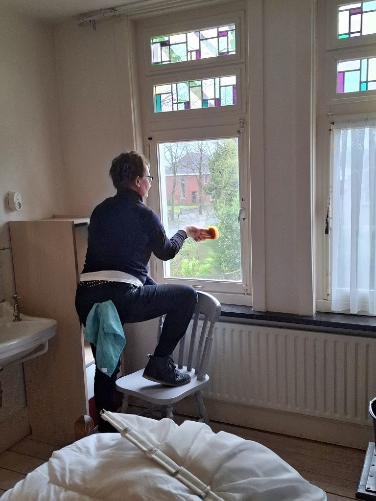 In het eerste uur kon er nog buiten in de tuin gewerkt worden. Toen het weer verslechterde, gingen veel vrijwilligers binnen verder met verschillende klusjes, zoals ramen wassen, bedden opmaken en opruimen. Enkele doorzetters bleven zelfs buiten aan het werk in de tuin.