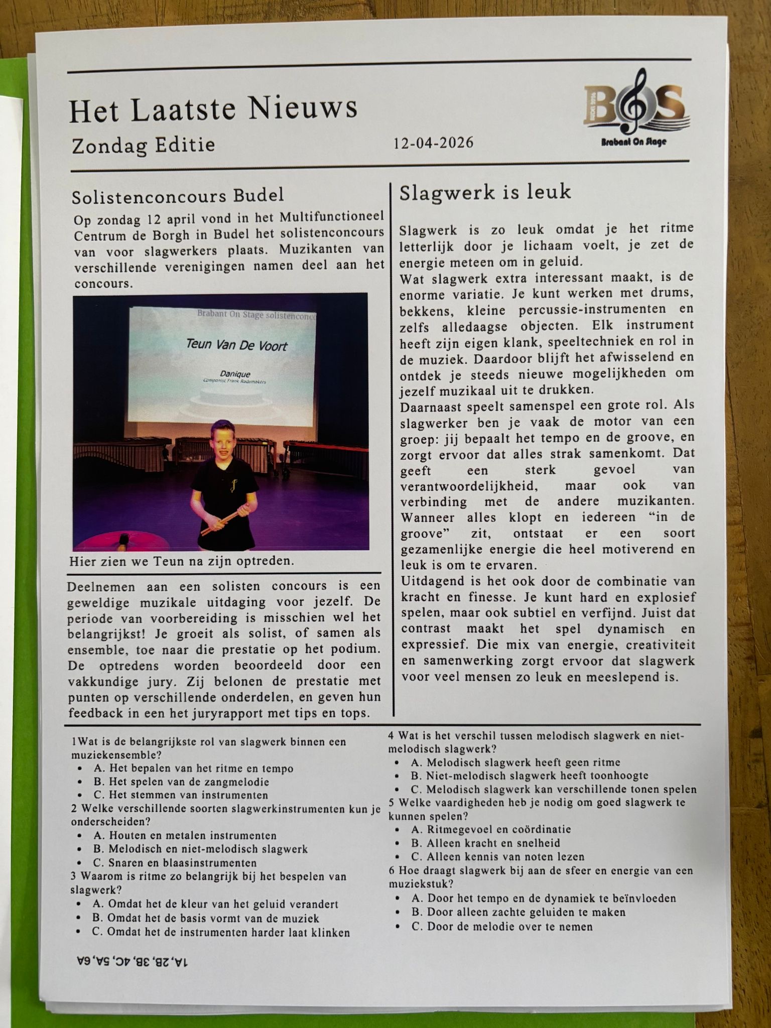 zondag 12 april namen zes jeugdige slagwerkers van Muziekvereniging Juliana deel aan het solistenconcours Brabant on Stage in Budel. Ze behaalden daar mooie resultaten!