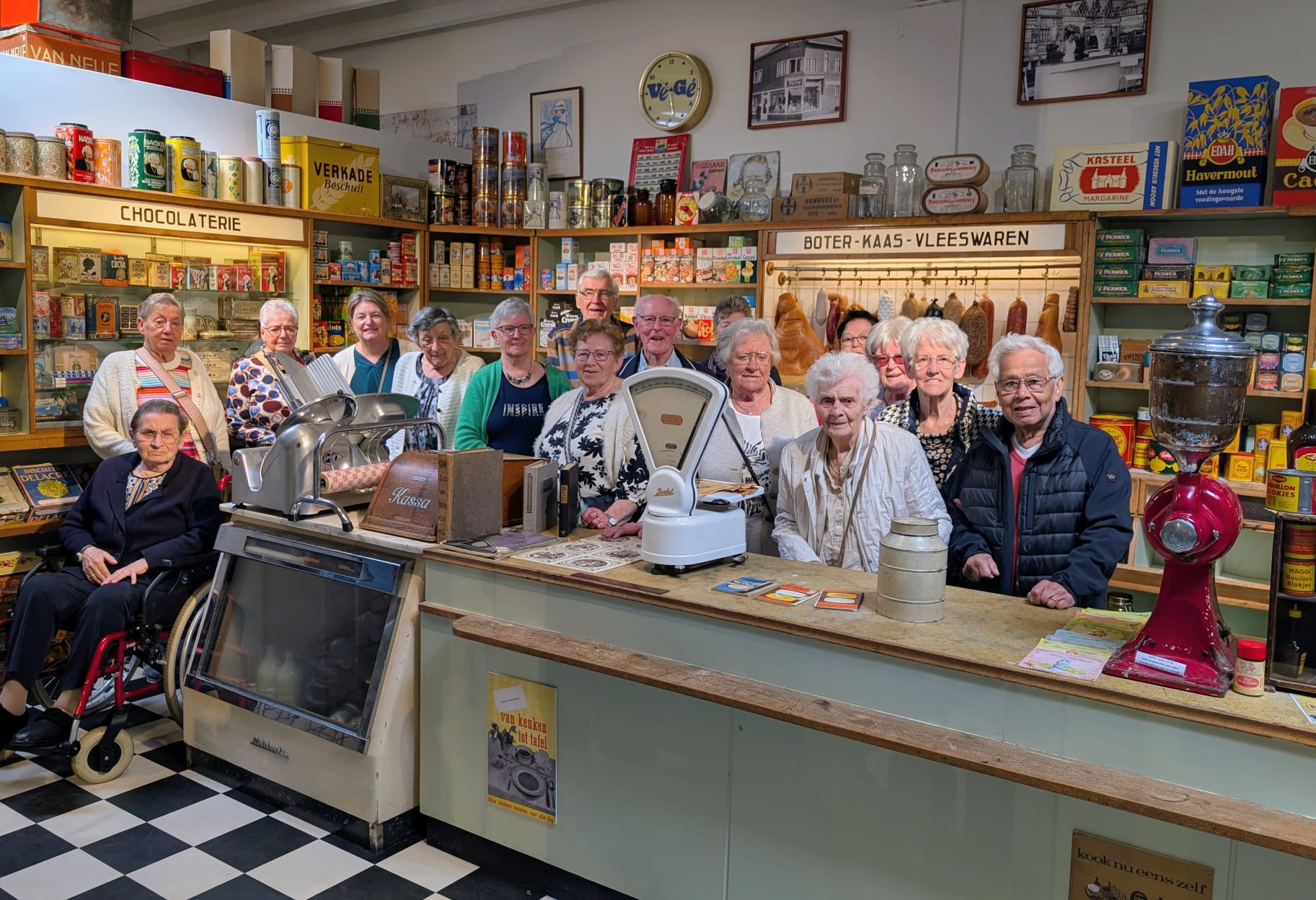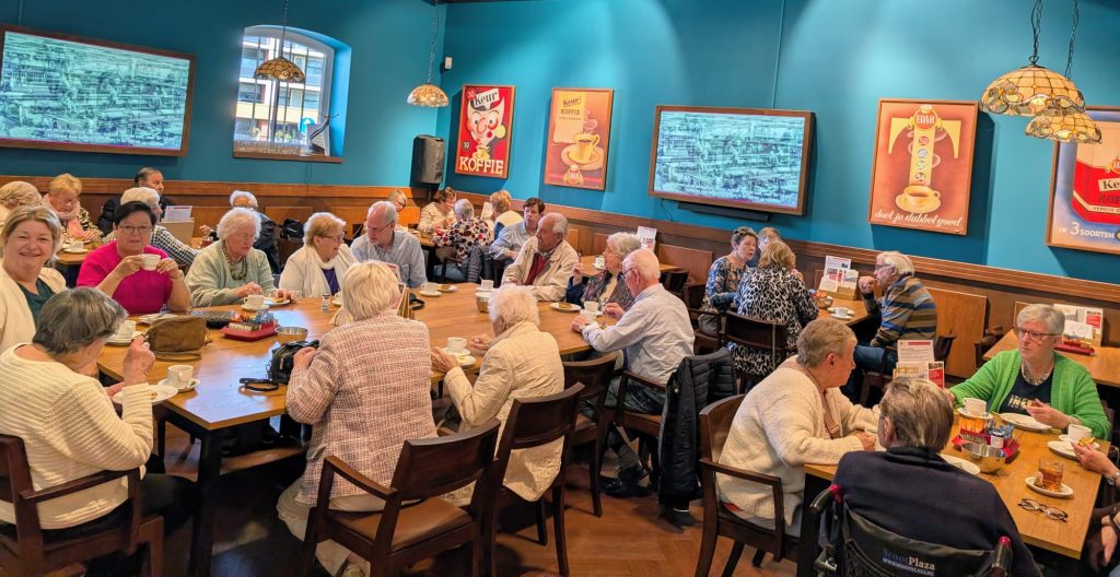 Op donderdag 9 april werden de gasten en vrijwilligers van brunchcafe de Einder, getrakteerd op een uitje naar het EDAH museum in Helmond. Met 31 personen gingen we op pad en bezochten we het museum, waar we werden ontvangen met koffie en vlaai. Daarna werden we in twee groepen verdeeld en kregen we een rondleiding. Er werd ons verteld over het onstaan en de geschiedenis van de EDAH. Mooi was het om de oude spullen uit het verleden te zien, dat was een feest van herkenning. Tegen de klok van 12.00 uur gingen we weer richting ons mooie D’end waar we afsloten met onze wekelijkse brunch. Een geslaagd uitstapje, wat werd mogelijk gemaakt door een donatie.